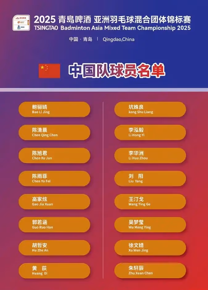2025年亚洲羽毛球混合团体锦标赛将于2月11日至16日在青岛国信体育馆举行。