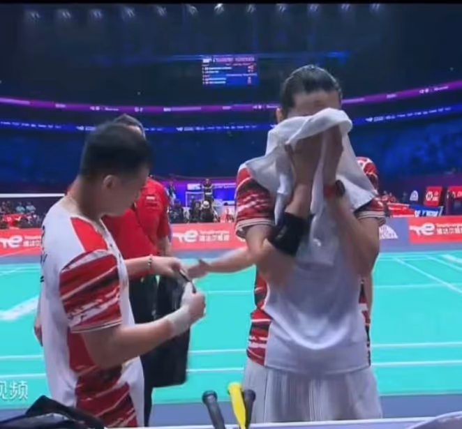 当时,印尼教练带着球员向裁判员申诉,同时还请来了裁判长。可惜裁判长相信裁判的判罚是正确的,丹麦组合以22比20拿下第一局。