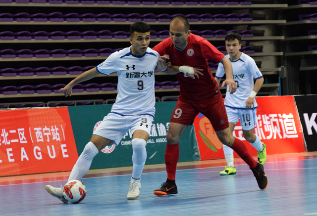 冠军争夺战在新建大学队与乌鲁木齐足协队之间进行,而相互熟悉的两支球队也为观众们奉献了一场对攻式的“新疆德比战”。两支球队在上半时结束就联手奉献了9粒进球,可谓是“你方唱罢我登场”,而每一粒精彩的进球都会引起现场观众的阵阵叫好。下半场开始后,而更为年轻的新建大学队通过频繁的交叉跑位和积极的前场拼抢,在第30分钟通过前场任意球机会,由8号球员艾尼沙尔丁·艾尔肯将比分追至5:5平。在比赛的最后十分钟里,两队虽拼尽全力,但都与进球失之交臂,战至平局的两队只能通过点球大战的方式决出冠军归属。点球中,新建大学队门将伊力亚尔江·艾尼发挥出色,而当新疆大学队7号莫合甫拉·莫太力甫将点球稳稳罚中后,球队也实现了在小组赛中定下的夺冠目标,成为五甲联赛北二区的赛区冠军。