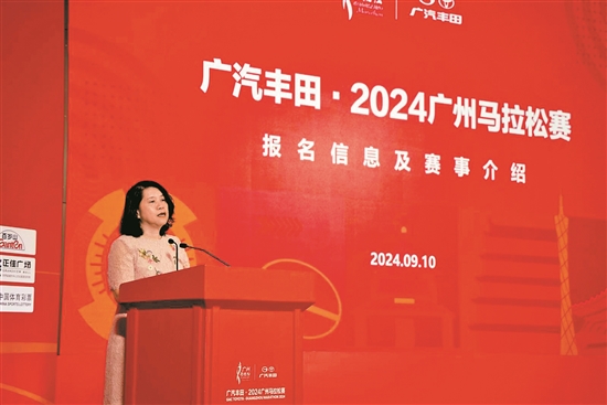 林燕芬介绍今年广马基本情况 羊城晚报记者 柳诚 摄
